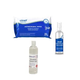 A variety of antibacterial and disinfectant essentials to keep your hands clean.